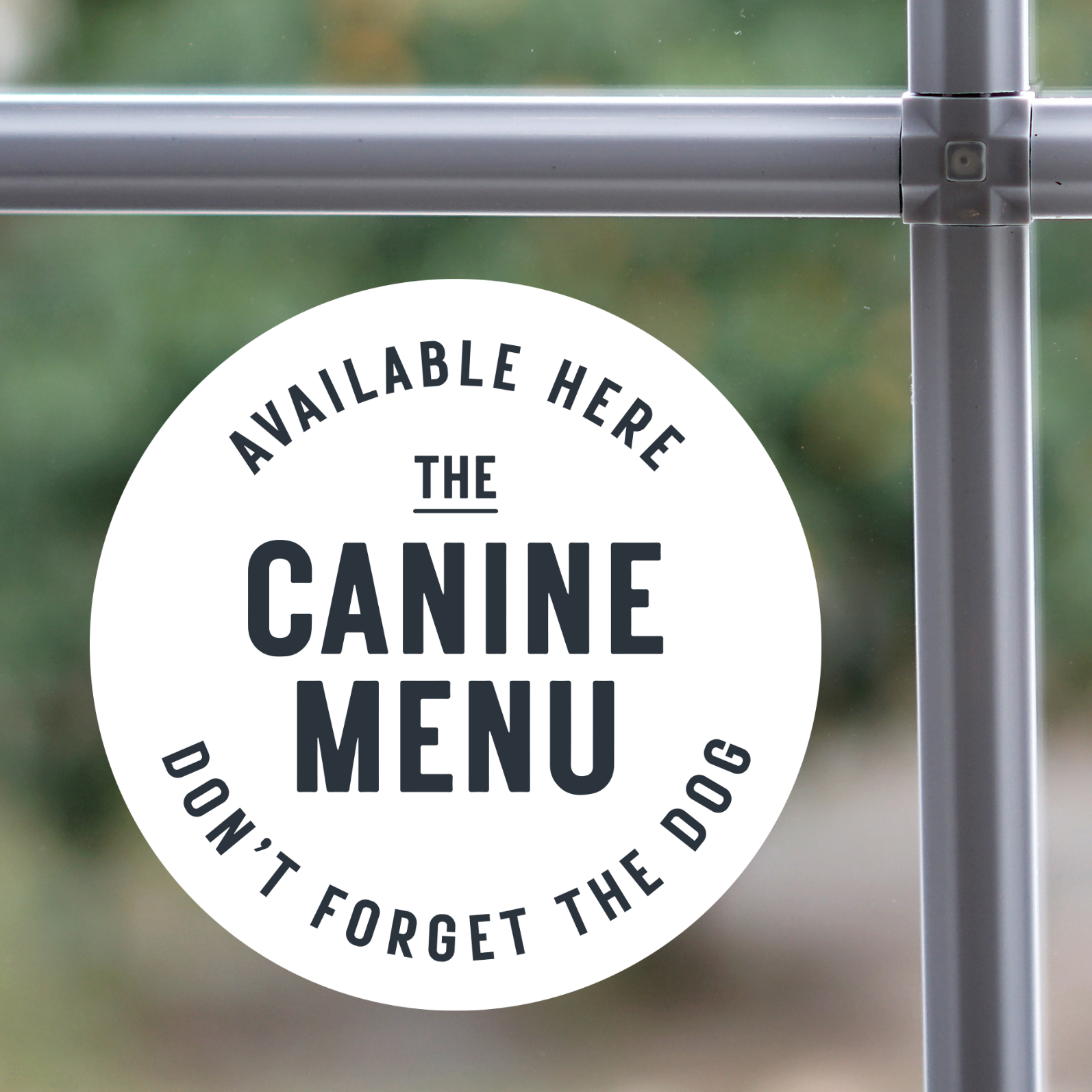 Laat voorbijgangers weten dat je hondenvriendelijk bent en een hondenmenu hebt voor hun viervoetige vrienden.